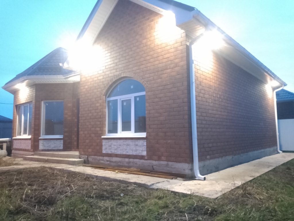 Мы возвели прекрасный одноэтажный кирпичный дом в станице Старокорсунской, реализовав мечту клиентов о собственном семейном доме. Архитектура выбрана классическая, гармонично сочетающаяся с местной природой Кубани. Надежность конструкции обеспечена использованием качественного материала и проверенных технологий строительства. Фасад облицован натуральным кирпичом коричнево-оранжевого цвета, прекрасно дополняющим природный колорит местности. Внутреннее пространство организовано удобно и рационально: высокие потолки, широкие окна наполняют помещение естественным светом, открывают прекрасные виды окрестностей прямо из окон гостиной и столовой. Функциональные пространства комнат подходят для комфортного расположения домашней обстановки и бытовой техники, помогая создать приятную обстановку для всех членов семьи. Значительное внимание уделялось энергосбережению: применялись эффективные утеплители стен и хорошие окна, позволяющие существенно экономить на отоплении и кондиционировании воздуха. Специальные покрытия фасадов защищают конструкцию от неблагоприятных погодных условий и сохраняют привлекательный внешний вид надолго. Дополнительно утеплены полы первого уровня, поддерживающие теплую температуру даже в зимний период. Удобства жителей увеличены наличием вместительных мест для хранения предметов быта, шкафа-купе в коридоре и специальной гардеробной комнате. Важнейшей задачей было обеспечить экологичность жилища, использовав исключительно экологически чистые строительные компоненты, заботясь о благополучии будущих обитателей. Так, наша работа стала ярким примером сочетания традиционных методов русского строительства с современными решениями, гарантирующими высокий уровень удобства и безопасности жилья.