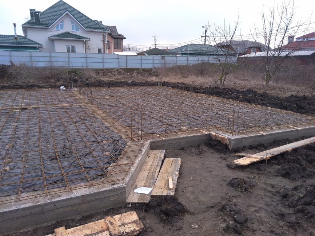 Залили нижнюю часть фундамента. Уложили арматурные каркасы, планируется делать обвязку углов принимать бетон